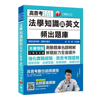 【暢銷商品】金榜傳說!高分上榜頻出題庫 法學知識與英文頻出題庫〔高普考/地方特考/各類特考〕〔贈輔助教材、讀書計畫表〕推薦